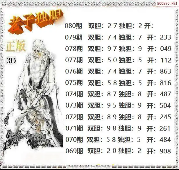 大飞彩3d推荐-2026084期