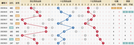 期数 | 试机号 | 关注码 | 金码 | 对应码 | 开奖号 | 出号 |