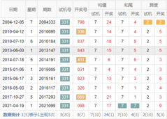 期数 | 试机号 | 关注码 | 金码 | 对应码 | 开奖号 | 出号 |