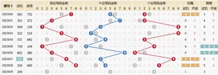 期数 | 试机号 | 关注码 | 金码 | 对应码 | 开奖号 | 出号 |