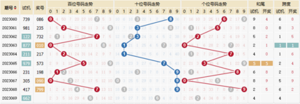 2016069期 试机号 023 开奖号 643 和 13