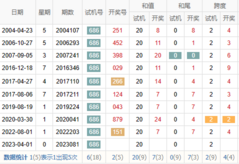 期数 | 试机号 | 关注码 | 金码 | 对应码 | 开奖号 | 出号 |