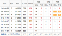 期数 | 试机号 | 关注码 | 金码 | 对应码 | 开奖号 | 出号 |