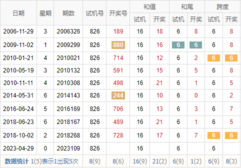期数 | 试机号 | 关注码 | 金码 | 对应码 | 开奖号 | 出号 |