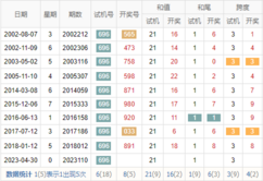 期数 | 试机号 | 关注码 | 金码 | 对应码 | 开奖号 | 出号 |