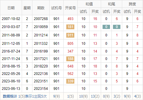 历史出现情况统计