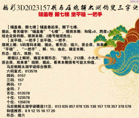 福彩3d第2023157期