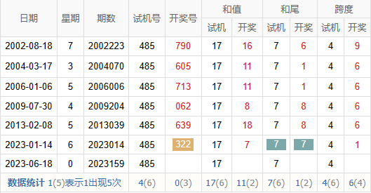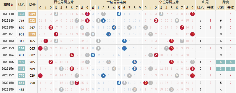 期数 | 试机号 | 关注码 | 金码 | 对应码 | 开奖号 | 出号 |