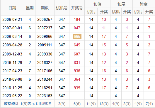 期数 | 试机号 | 关注码 | 金码 | 对应码 | 开奖号 | 出号 |