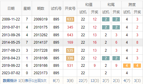 期数 | 试机号 | 关注码 | 金码 | 对应码 | 开奖号 | 出号 |