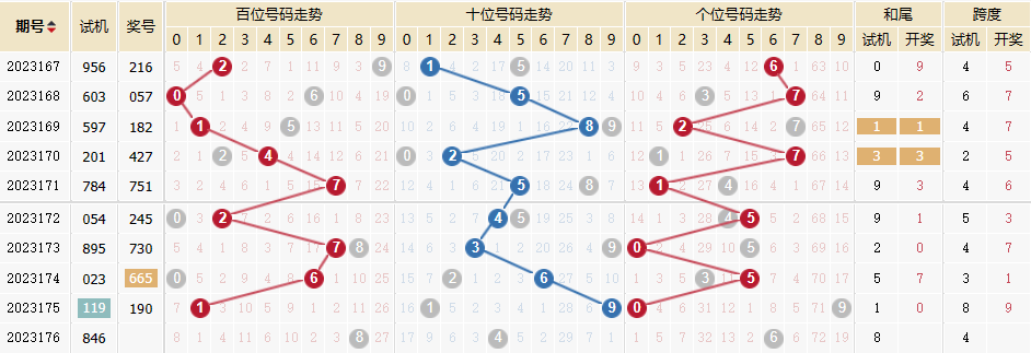 期数 | 试机号 | 关注码 | 金码 | 对应码 | 开奖号 | 出号 |