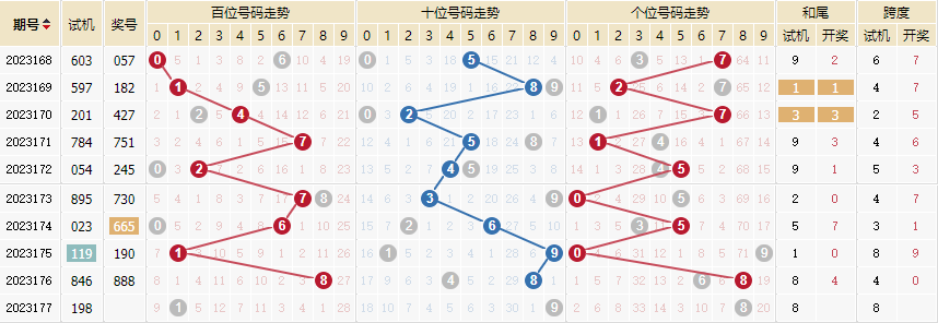 期数 | 试机号 | 关注码 | 金码 | 对应码 | 开奖号 | 出号 |