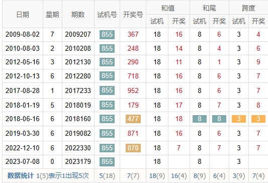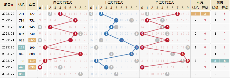 期数 | 试机号 | 关注码 | 金码 | 对应码 | 开奖号 | 出号 |
