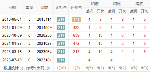 2021181期 试机号 608 开奖号 371 和 11