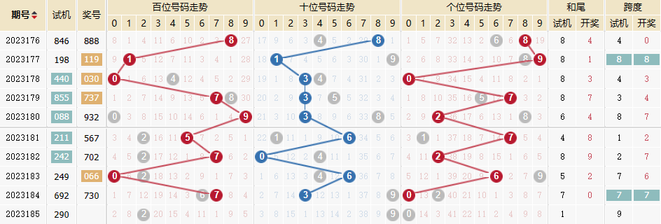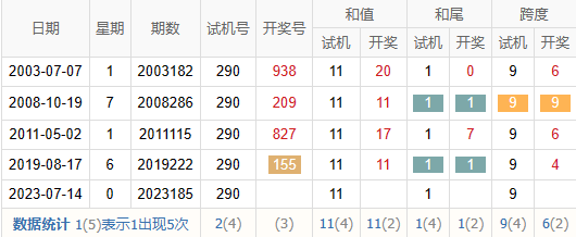 期数 | 试机号 | 关注码 | 金码 | 对应码 | 开奖号 | 出号 |
