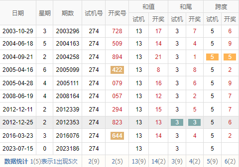 历史出现情况统计