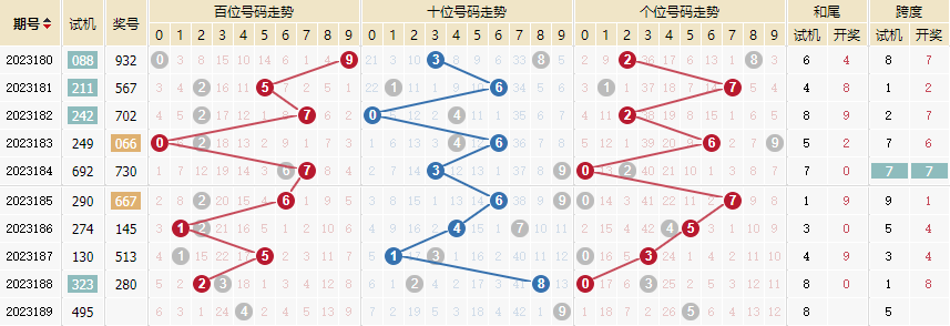 期数 | 试机号 | 关注码 | 金码 | 对应码 | 开奖号 | 出号 |
