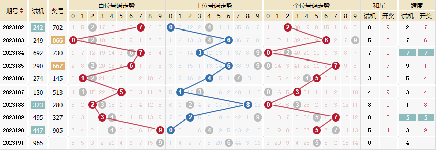 期数 | 试机号 | 关注码 | 金码 | 对应码 | 开奖号 | 出号 |