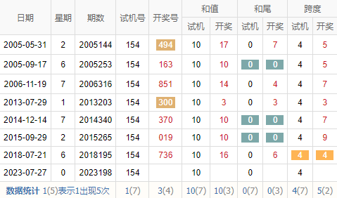 历史出现情况统计