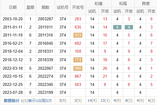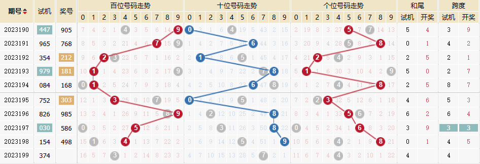 期数 | 试机号 | 关注码 | 金码 | 对应码 | 开奖号 | 出号 |