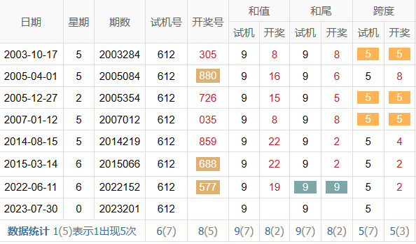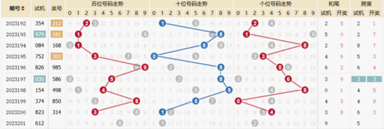 期数 | 试机号 | 关注码 | 金码 | 对应码 | 开奖号 | 出号 |