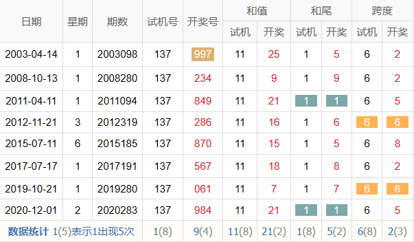 历史出现情况统计