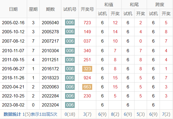 历史出现情况统计
