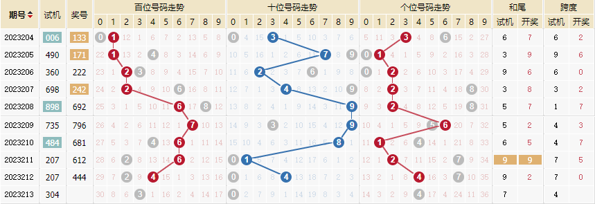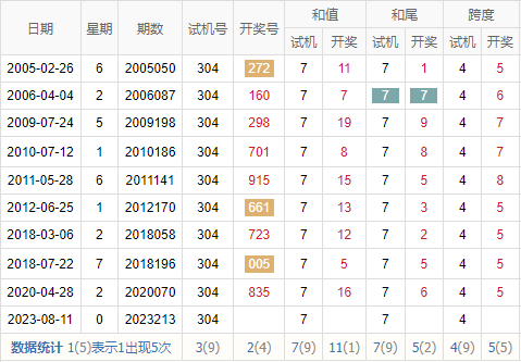 期数 | 试机号 | 关注码 | 金码 | 对应码 | 开奖号 | 出号 |