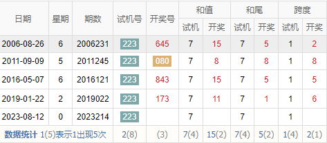 2003214期 试机号 225 开奖号 597 和 21