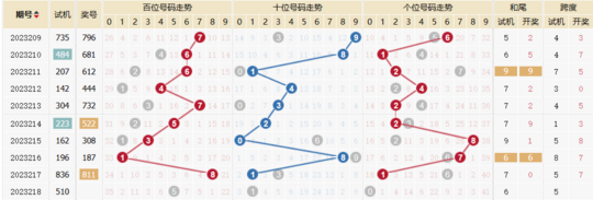 期数 | 试机号 | 关注码 | 金码 | 对应码 | 开奖号 | 出号 |