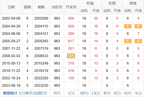 历史出现情况统计