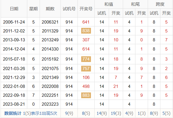 历史出现情况统计