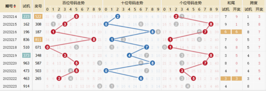 2022223期 试机号 966 开奖号 230 和 5