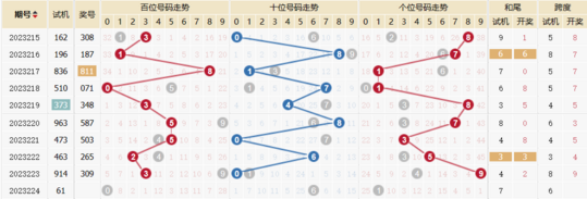 期数 | 试机号 | 关注码 | 金码 | 对应码 | 开奖号 | 出号 |