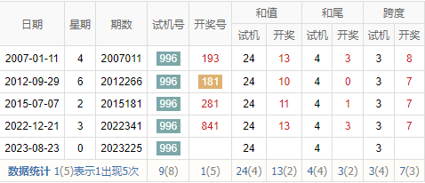 历史出现情况统计