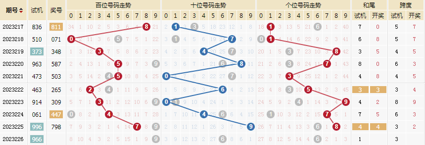 期数 | 试机号 | 关注码 | 金码 | 对应码 | 开奖号 | 出号 |