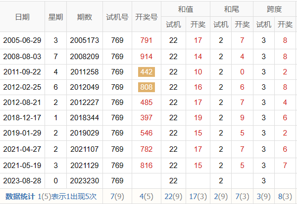 历史出现情况统计