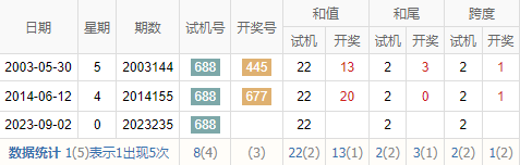 期数 | 试机号 | 关注码 | 金码 | 对应码 | 开奖号 | 出号 |