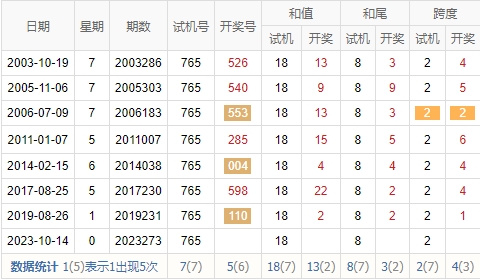 期数 | 试机号 | 关注码 | 金码 | 对应码 | 开奖号 | 出号 |