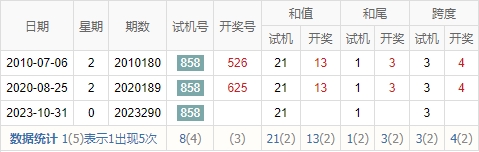 期数 | 试机号 | 关注码 | 金码 | 对应码 | 开奖号 | 出号 |