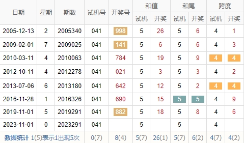 期数 | 试机号 | 关注码 | 金码 | 对应码 | 开奖号 | 出号 |