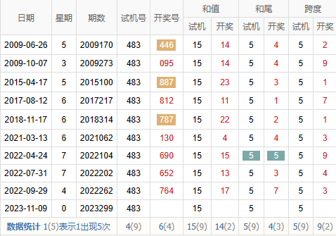 历史出现情况统计