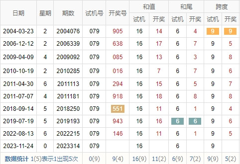 期数 | 试机号 | 关注码 | 金码 | 对应码 | 开奖号 | 出号 |
