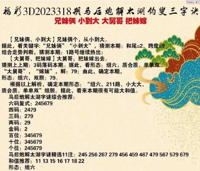 机选三胆:358 独胆:3