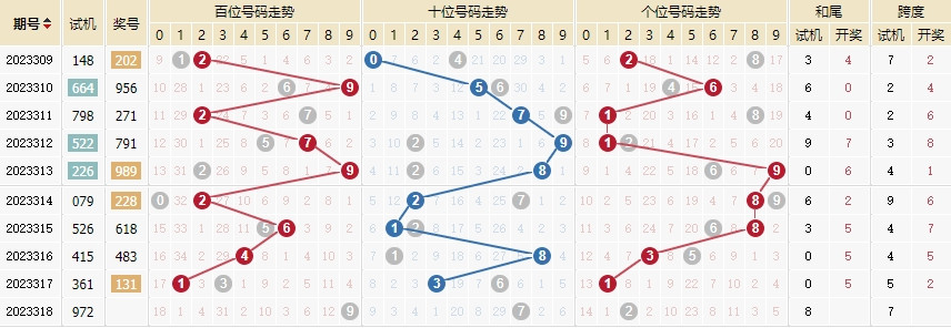 2003318期 试机号 197 开奖号 023 和 5