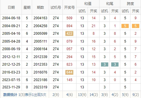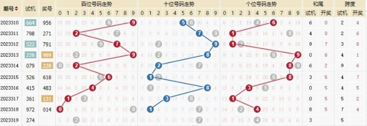 期数 | 试机号 | 关注码 | 金码 | 对应码 | 开奖号 | 出号 |