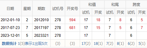 2011321期 试机号 210 开奖号 944 和 17