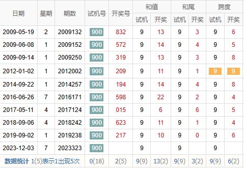 和尾:9 跨度:9