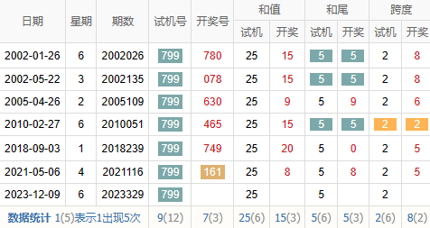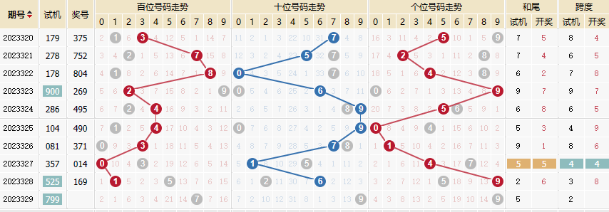 期数 | 试机号 | 关注码 | 金码 | 对应码 | 开奖号 | 出号 |