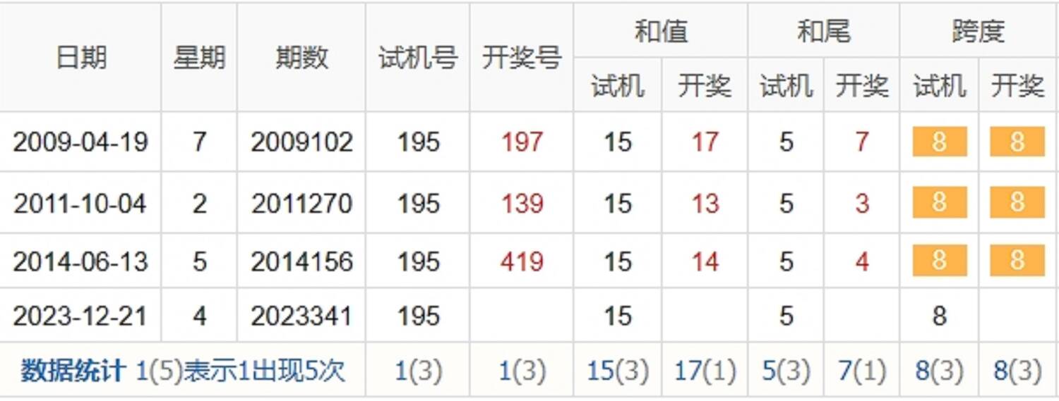 期数 | 试机号 | 关注码 | 金码 | 对应码 | 开奖号 | 出号 |